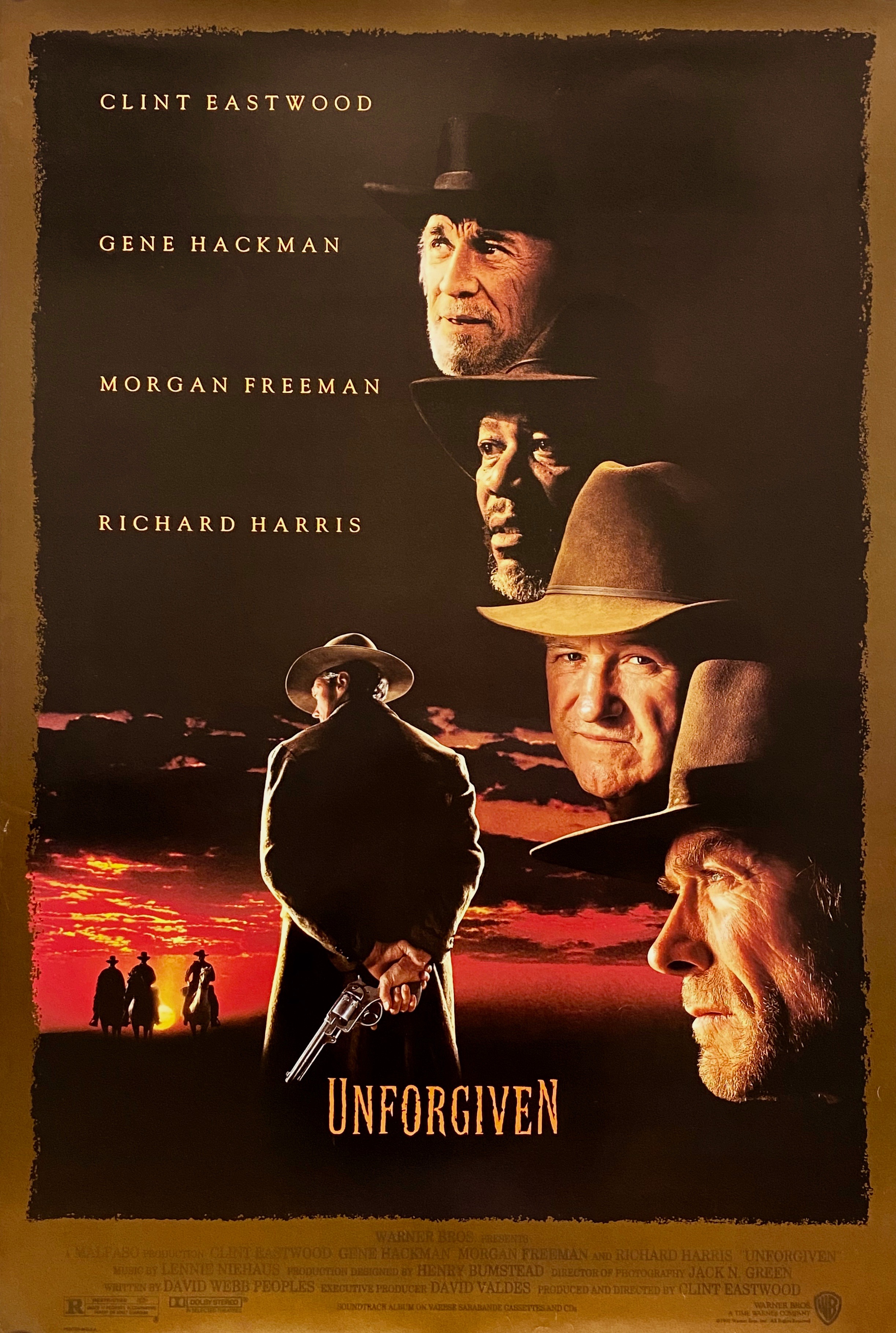 Mint az köztudott, Clint Eastwood a színészet mellett a rendezést is kipróbálta, és igazán remekül ment neki. Fantasztikus filmeket köszönhetünk neki, melyek során színészi tehetségével, tapasztalataival, és eddigi rendezőitől ellesett fortélyok kamatoztatásával hozott létre fantasztikus műveket. Talán a legjobb filmje eddig, és a western filmek közt is top 3-as az 1995-ös Nincs bocsánat. A történet szerint egy kisvárosban egy bordély emeletén egy senkiházi férfi összeszabdalja egy örömlány arcát. Nincs következménye, hiszen a szajhákat nem vették ember számba, ráadásul a kisvárost uraló marsal öntörvényű, kegyetlen ember, és feltett szándéka kiírtani a városából a fejvadászokat, kalandorokat és cowboyokat. Az örömlányok azonban nem hagyják annyiban, és felfogadnak egy kalandvágyó fiút, hogy tanítsa móresre a lányt összevagdosó férfit. A srác maga mellé vesz két profi fejvadászt, egyikük öregsége ellenére még érzi a vadnyugat hívását, ám a másikuk megfáradt, és felesége emléke miatt pedig inkább nem ragadna többé fegyvert, de mégis belemegy a játékba. A trió elindul a csöppet sem bonyolult feladat elvégzésére, de a fiatal naív kalandvágy és az öreg bóskomorság közti szakadék kellemetlen pillanatokat ígér, ráadásul a kisvárosban uralkodó kegyetlen marsal is nem várt problémákat okoz. A film könnyedén viszi magával a nézőt a történéseken, majd szembesíti a hősi eposzoktól eltérő kegyetlen valósággal, és mindezt zárja egy sötét, szívbe markoló befejezéssel, ami a legjobbak közé emeli a Nincs bocsánat című filmet.